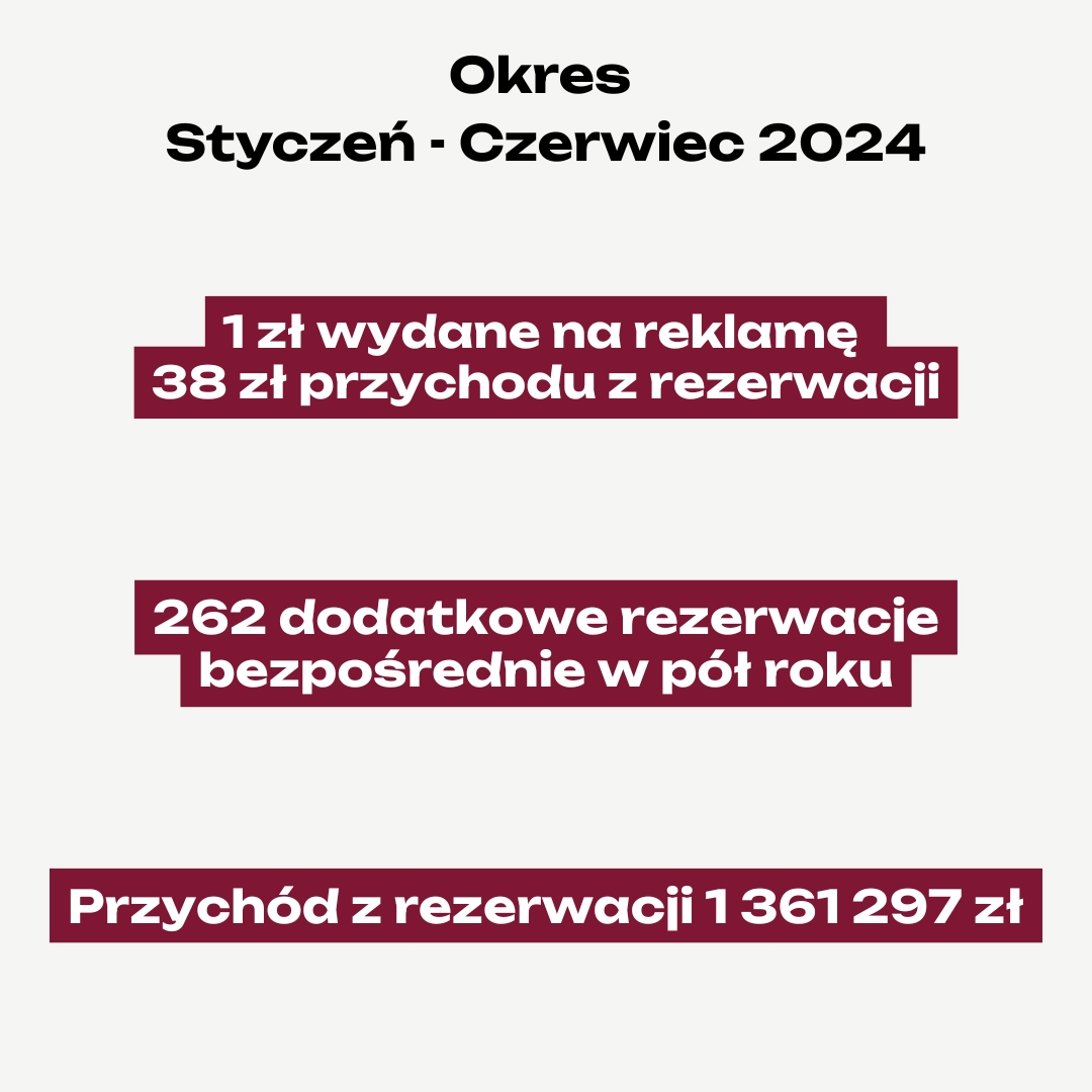 Dzięki konsekwentnej współpracy i kompleksowej strategii osiągnęliśmy ponad pół miliona złotych więcej z rezerwacji bezpośrednich w zaledwie pół roku. To różnica między oddawaniem prowizji portalom a budowaniem rentownego biznesu.